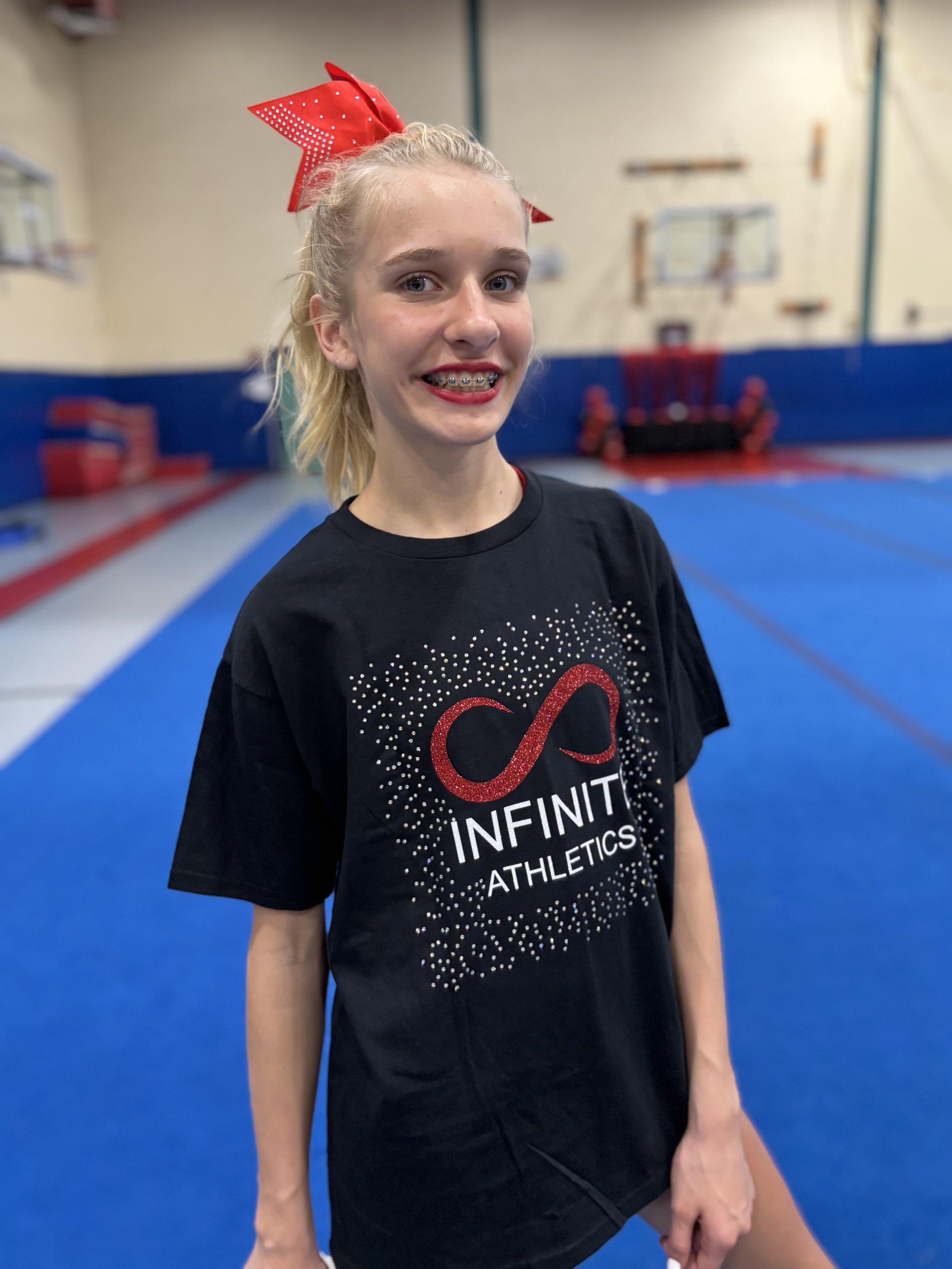 Focuses strictly on developing tumbling skills by providing skill training, developmental drills, and safe spotting to increase athlete’s skillset. At Infinite, we evaluate your athlete’s current tumbling skills and use progressions to safely enhance and build their tumbling abilities to reach their goals. As a preventative training to avoid injury and strain, we focus on calisthenics, conditioning, and increasing flexibility to further enhance your athlete’s athletic abilities, on and off the mat.